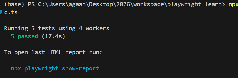 After execution, Playwright tells us: